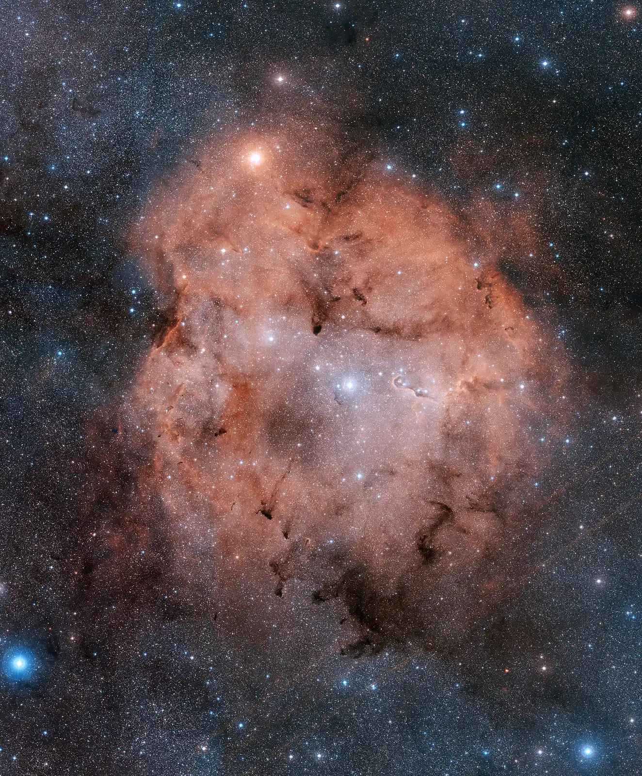 газопылевая туманностьТуманность IC 1396 находится на расстоянии около 3тыс. световых лет от земли в созвездии Цефея, размеры ее поистине колоссальные - несколько сотен световых лет в поперечнике.