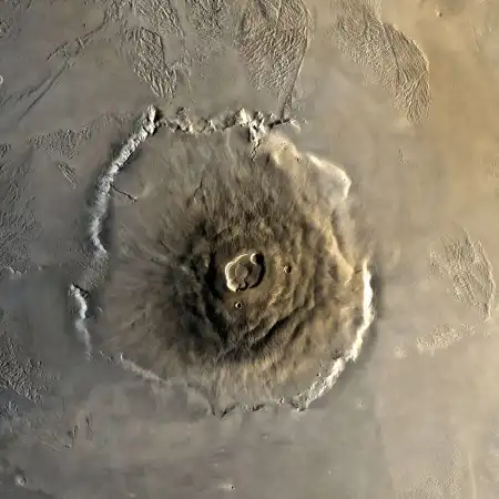 Марсианский вулкан ОлимпВулкан Олимп с его высотой в 27 км вероятно является крупнейшим вулканом солнечной системы, к сожалению, погасшим