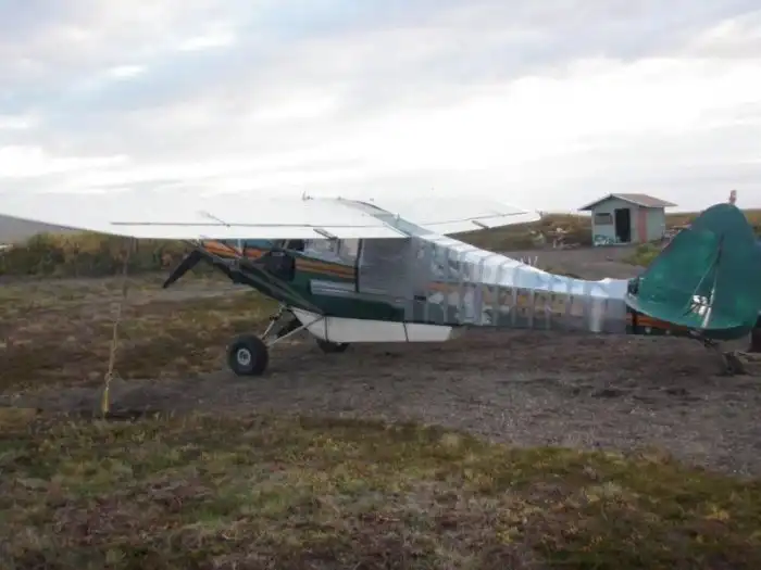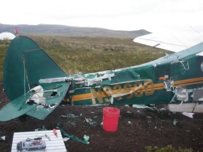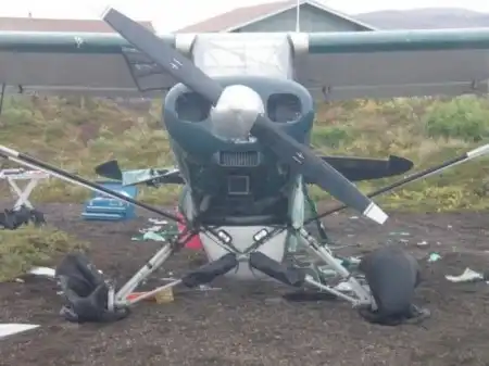 Два парня из Канады отправились на рыбалку на личном самолете. Когда они уже собирались возвращаться домой, из леса появился медведь, привлеченный запахом рыбы, доносившимся из самолета.