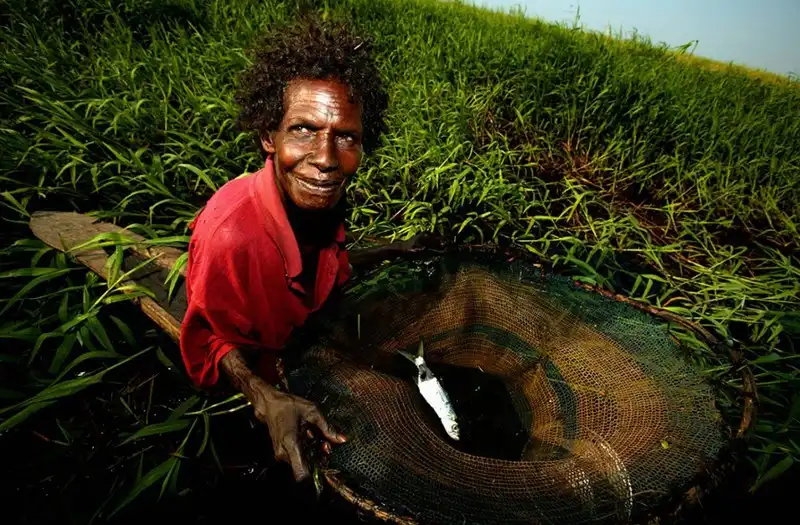 24. Пожилая женщина ловит рыбу на реке Флай в отдаленном регионе Папуа Новая Гвинея. (Brent Stirton/Getty Images)