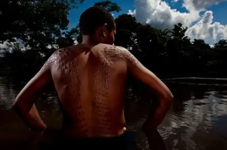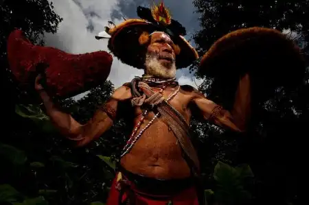 11. Местный народ с реки Флай – отдаленного региона Папуа Новой Гвинеи, где стиль жизни также выходит от отношений между людьми и природой. (Brent Stirton/Getty Images)