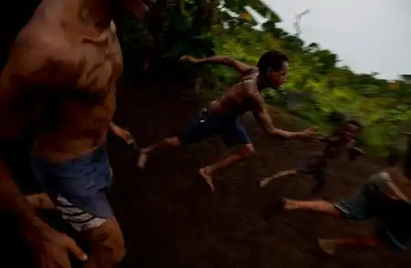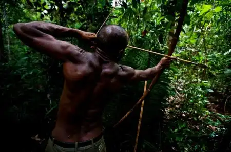 14. Охота на дикого кабана и казуара в отдаленных областях вдоль берегов озера Мюррыэ, Папуа Новая Гвинея, 1 января 1009 года. Эти сообщества живут в единении с природой. Они охотятся, ловят рыбу и занимаются сельским хозяйством, но всегда делают это в полной гармонии с природой. Они прогнали отсюда малазийских лесорубов, наносивших вред окружающей среде. (Brent Stirton/Getty Images)