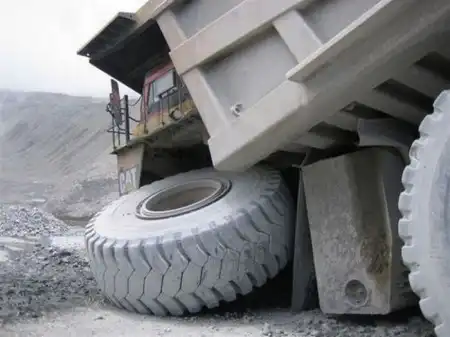 На этого гиганта погрузили больше 300 тонн камней. В результате, не выдержала передняя ось.