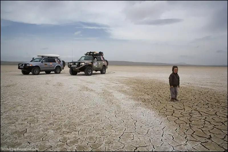 Солончак издали красив. Но он коварен, можно основательно завязнуть.