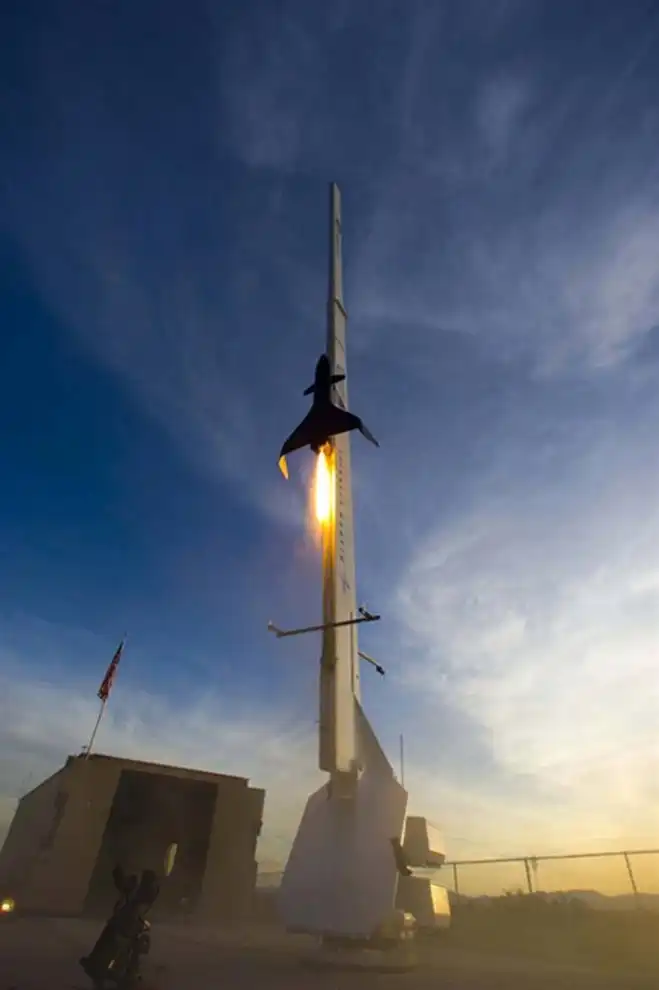 11. Прототип автономной ракеты компании «Lockheed Martin» взбирается по рельсам к пусковой установке на космодроме в Нью-Мехико в августе 2008 года. Компания «Lockheed» мало что говорит о разработках из-за боязни кражи прав, но запуск ракеты 10 октября был успешным. (Lockheed Martin Space Systems Company)