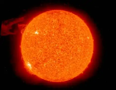 9. Огромная выпуклость проступает с левой стороны солнца на этом снимке, сделанном из 30-часовой записи в ультрафиолетовом спектре космическим аппаратом «СТЕРЕО». Выпуклость, зарегистрированная 26-27 сентября и подпитываемая магнитным полем солнца, была одной из самых крупных, так что ее могли наблюдать оба аппарата обсерватории «СТЕРЕО» в течение долгого периода времени. (NASA)