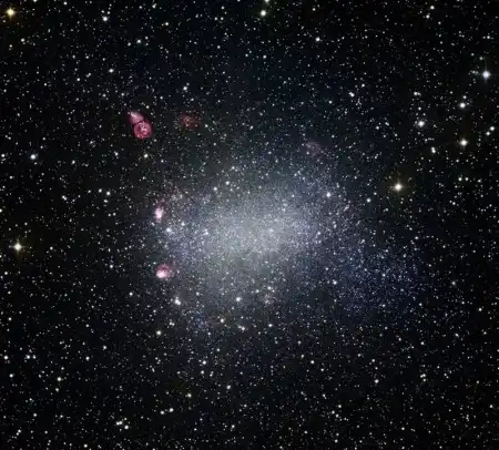 6. Этот портрет галактики Барнарда, сделанный Европейской южной обсерваторией в Чили и опубликованный 14 октября, показывает замысловатую звездообразующую туманность в оттенках красного и фиолетового. Также известная как NGC 6822, эта небольшая неправильная галактика является одной из соседок Млечного Пути – она располагается в 1,6 миллионах световых лет от него. (ESO)
