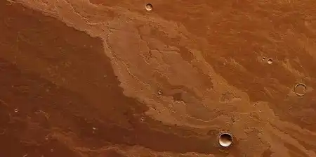12. За всю геологическую историю Марса вулканическая лава стремительно бежит по региону, известному, как Равнина Дедалия, к юго-востоку от большого вулкана, известного под названием гора Арсия. На этом снимке, сделанном Европейской южной обсерваторией в Чили и опубликованном 9 октября, вы видите следы, оставленные огненными потоками. (ESA/DLR/FU Berlin)