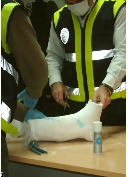 66-летний чилиец решил спрятать кокаин в гипсе на своей ноге, он думал что запах его ног отобьет нюх