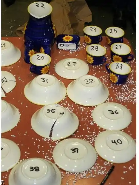 Этот сервиз был разбит вдребезги, так как в материал из чего он был сделан состоял из 20 кг кокаина