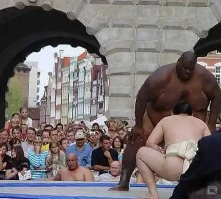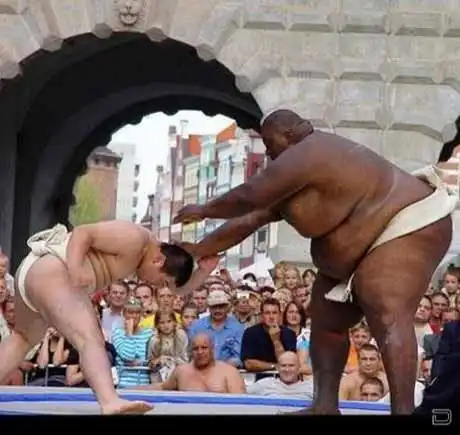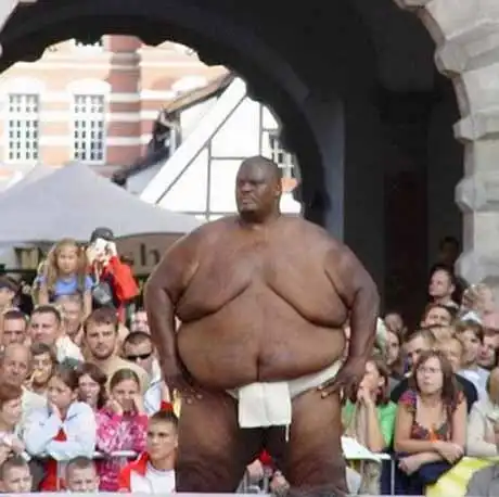 Это — самый толстый атлет в мире Emanuel Yabrauh и весит он около 400 кг. Он же является самым большим и тяжелым борцом сумо в мире.