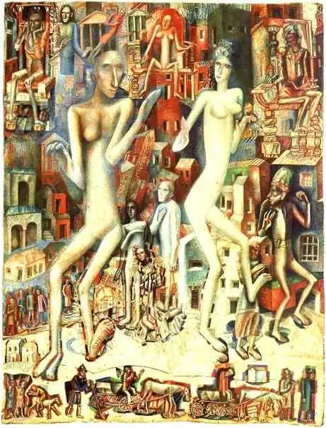 Филонов - Мужчина и женщина, 1912-1913. Акварель