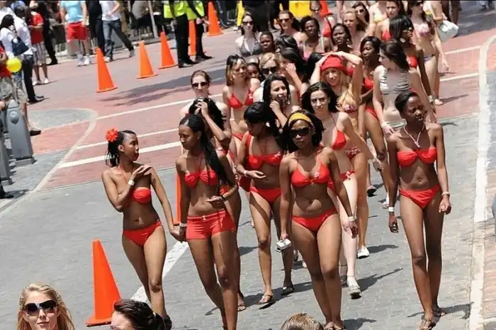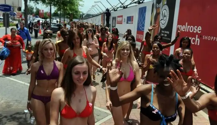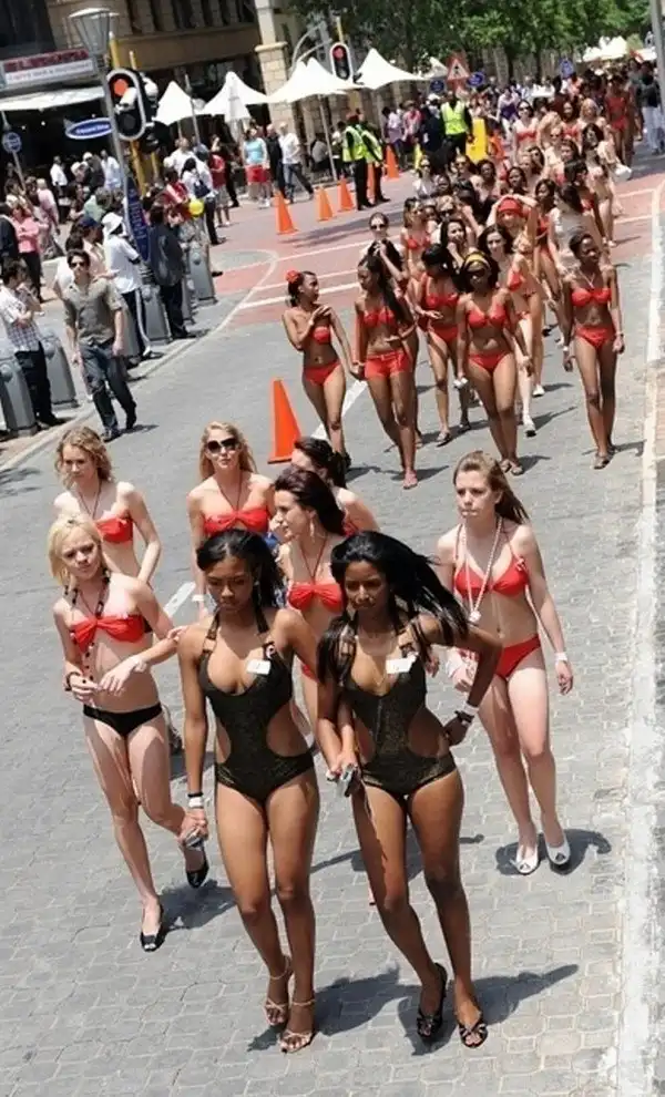 Организаторы парада купальников, прошедшего в Йоханнесбурге, Южная Африка претендуют на мировой рекорд, так как говорят, в акции приняли участие свыше тысячи красавиц. Так много полуголых женщин раньше еще не собиралось. Обязательных условий, чтобы принять участие в параде было два: молодость и раздельный купальник. Чтобы дополнительно подчеркнуть пляжный стиль, некоторые надевали солнечные очки и шляпы. Власти города позаботились, чтобы девушек никто не трогал — центр города огородили забором, а охраняла участниц полиция. Цель акции на самом деле серьезная — привлечь внимание к проблеме рака молочной железы. Этой болезнью в Южно-Африканской республике болеют тридцать процентов женщин.