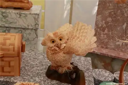 Работа сложная и тонкая - семь тысяч перьев из кедра выстрогать, а клюв и когти из десятков слоев стружки склеить!
