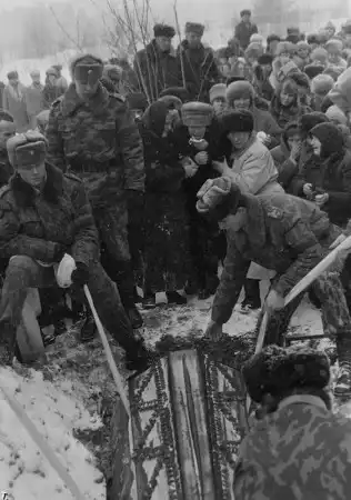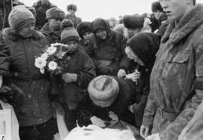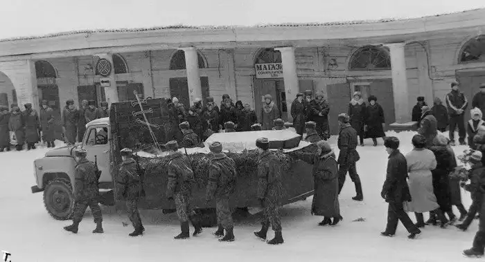 После этого гроб опустили в яму, солдаты дали тройной залп из автоматов, а через десять минут могилку уже полностью занесло снегом и она ничем не отличалась от таких же могилок на городском кладбище.