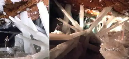 Свежее чудо природы - найденная недавно пещера гигантских кристаллов около города Чихуахуа в Мексике. Огромные кристаллы цинко-серебряно-свинцовых солей выросли благодаря особым условиям в пещере.