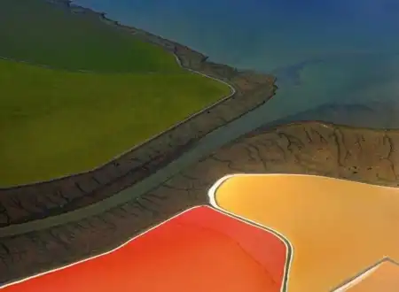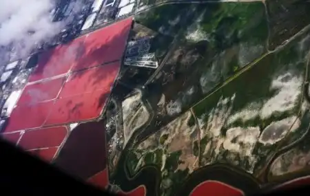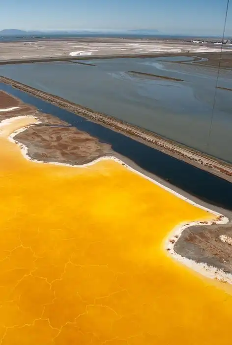 Удивительные разноцветные пруды одятся в окрестностях Сан-Франциско. Эти искусственные водоемы созданы для добычи соли путем выпаривания морской воды. А палитру цветов создают водоросли и микроорганизмы. Причем, цвет пруда указывает на его степень солености. Так, например, пруды с низкой и средней соленостью имеют окраску от бледно-зеленой до глубокой коралло-розовой. С возрастанием солености в водорослях начинает преобладать красный пигмент. Также на цвет водоемов влияет погода. Например, сильный дождь может изменить оттенок или сделать воду совсем прозрачной.