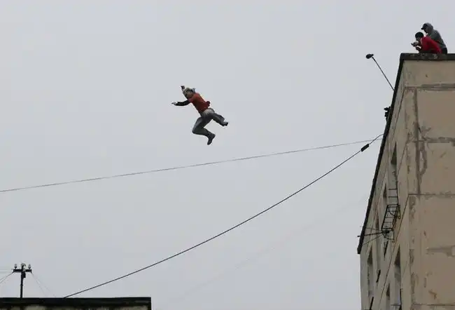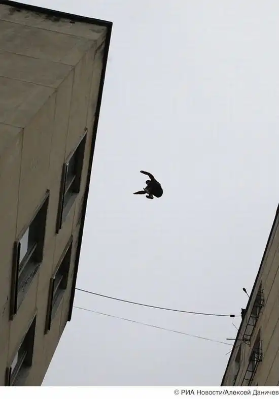 Сумасшедшие питерские парни нашли себе развлечение, они прыгают с одного дома на другой,