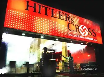 Такое себе незамысловатое кафе в Мумбаи, Индия, украшенное свастиками, является плодом усилий ресторатора Пунита Саблока. Название он выбрал исключительно для привлечения внимания посетителей, блюда из индийской кухни, вроде crostini tonno, pear & ricotta salad, pannacotta и прочих. Как утверждает Пунит, «Гитлер — известное имя, все слышали о нем». После логичного давления израильских и немецких дипломатов, а также еврейской диаспоры в Индии, название его было изменено на «The Cross», или просто «Крест».