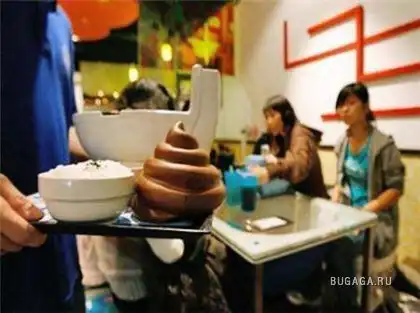 Modern Toilet — ресторан для тех, у кого нет никаких «туалетных» комплексов и хороший аппетит. Расположен он в Тайване, все посетители этого ресторана сидят на стульях в форме унитаза, закрытого крышкой и украшенного изображениями цветов и ракушек. Под прозрачными столами находятся обыкновенные раковины, пищу подают в особых тарелках в форме унитаза, да и сама пища, мягко говоря, соответствует окружающей атмосфере... Напитки в пластиковых контейнерах для сбора анализов, мороженое в форме какашек и другие прелести... crazy Все это делается, со слов менеджера, для шокирования и манипуляций с вкусовыми ощущениями посетителей.