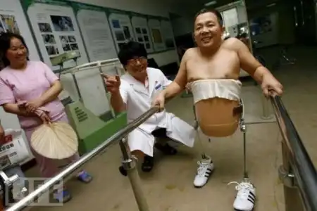 Житель Китая, которому пришлось ампутировать половину тела после того, как его переехал грузовик, поражает хирургов своим выздоровлением.