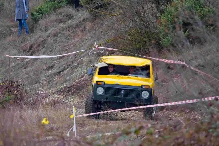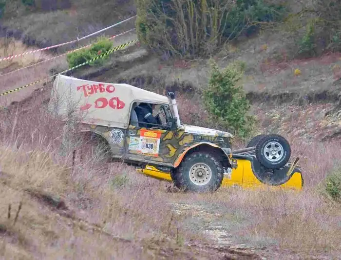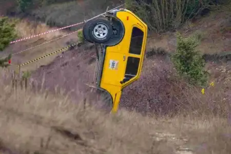 Во время ралли, одна из машин перевернулась, но экипажу удалось завершить гонку.