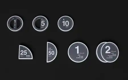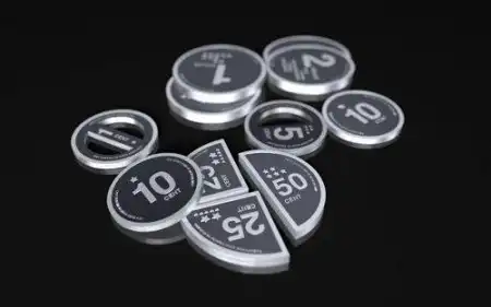 Оригинальную форму разменных монет предложил японский дизайнер Mac Funamizu. Он разделил монету, словно пирог на куски, соответственно их достоинству. Так 25-ти центовая монета выполнена в форме четверти круга, а 50-ти центовая - в виде половины.