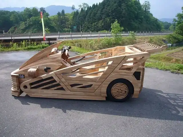 Японский производитель мебели Sada-Kenbi сделал автомобиль из дерева под названием "Манива". Автомобиль почти полностью состоит из деревянных деталей, и может разогнаться до 80 км/час.