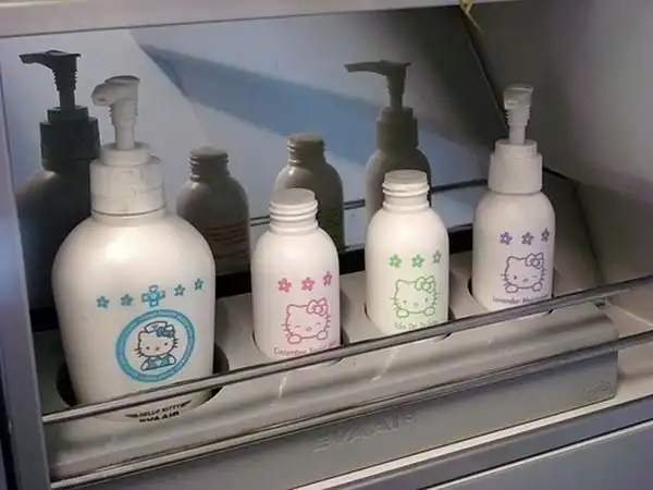 Необычный самолет теперь будет осуществлять ежедневные перелеты из города Тайпей в Фукуока и обратно. Провожают и встречают пассажиров этого уникального рейса ростовые куклы-персонажи Hello Kitty. Внутренняя отделка самолета тоже соответствует стилю, символика мультфильма присутствует везде, где только это возможно: забавная и знакомая всем кошачья мордочка смотрит на вас с каждой салфетки. сумки или кресла. Униформа служебного персонала также выполнена в стиле Hello Kitty.