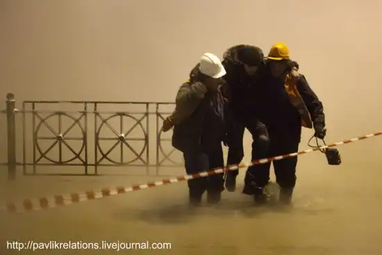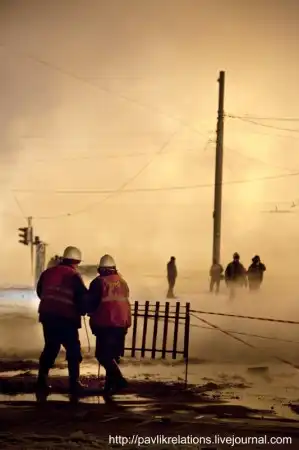 Мощнейший прорыв теплотрассы произошел вчера около 23 часов в Петербурге у станции метро пр-т Большевиков. Хлынувший кипяток затопил весь перекресток Коллантай и Большевиков, некоторые машины стояли по бампер в кипятке, людям пришлось ждать около часа, пока их спасли. Из-за сильных клубов пара видимость была практически нулевая, с трудом можно было разглядеть свои руки. Некоторые прохожие, угодившие в кипяток, получили ожоги. По последней информации пятнадцать человек получили серьезные травмы и еще четверо в тяжелом состоянии госпитализированы. Люди попросту не видели куда шли. Кроме того, из-за горячего пара одежда промокала насквозь, и люди, выходившие из зоны ЧП тут же попадали на мороз.