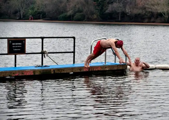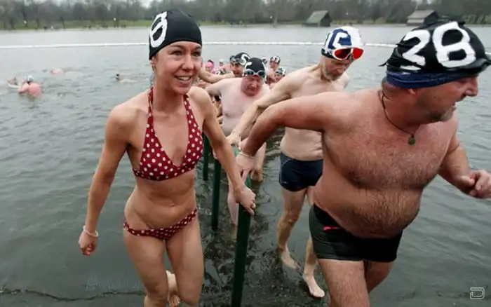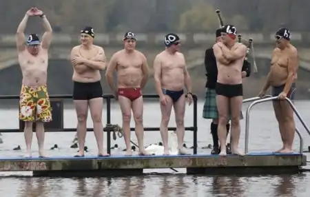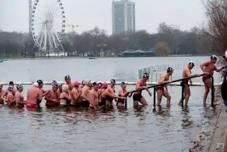 Традиционные рождественские заплывы “Питера Пэна” на сто ярдов (около 92 метров) по речке Серпентайн (Serpentine) в лондонском Гайд Парке собирают большое число любителей зимнего плавания на протяжении вот уже 105-ти лет. Нынешний год не стал исключением из правил.