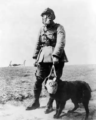 Война с ее газовыми атаками заставила надеть противогаз и на собаку.