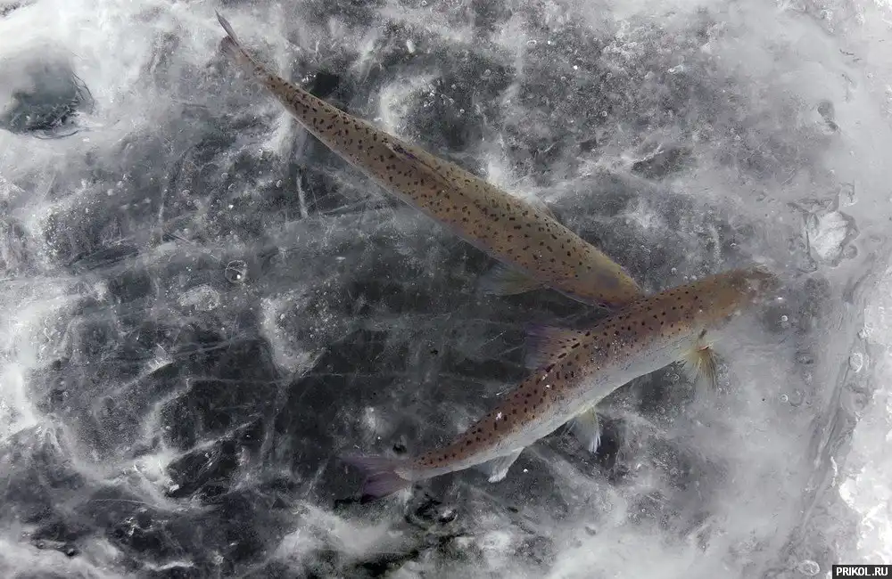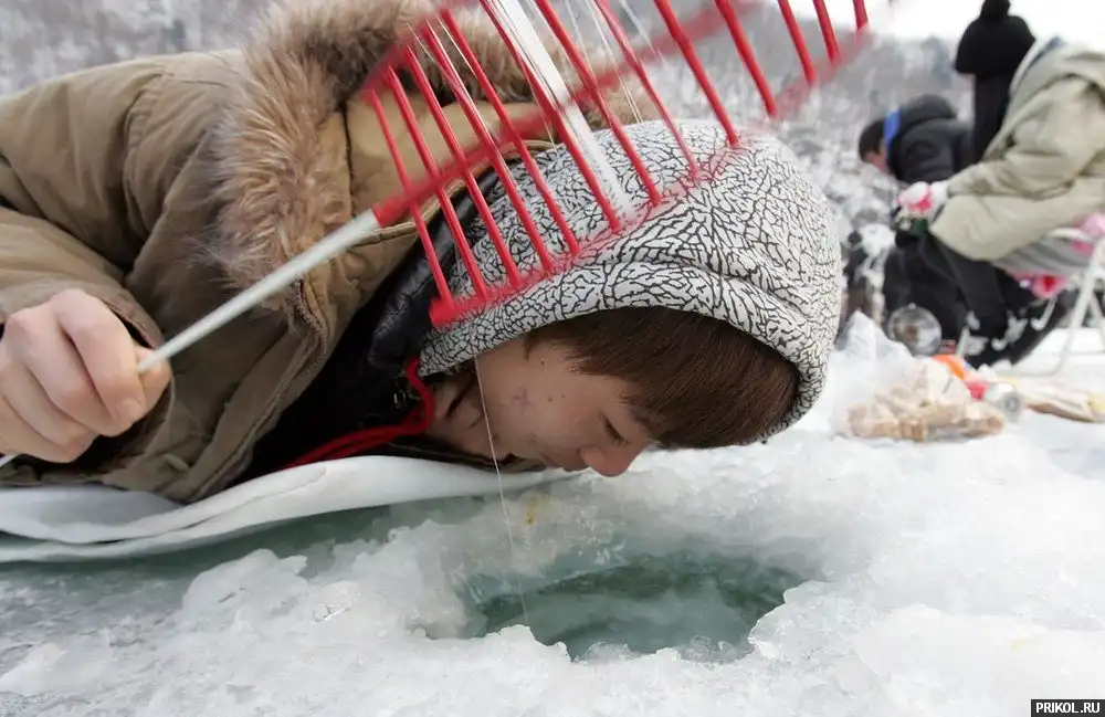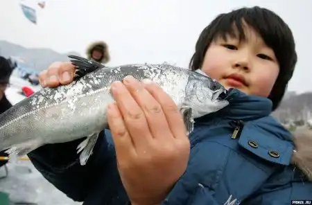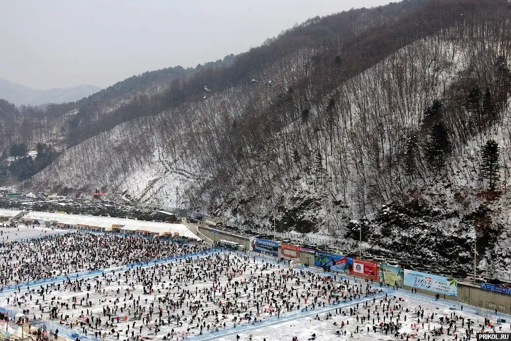 9 января 2010. В Южной Корее проходил ежегодный январский фестиваль форели Хванчхон Санчхоно. На лед реки Хванчхонган съезжались сотни людей, чтобы поучаствовать в ловле горной форели.