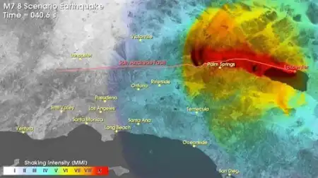 Это самое подробное моделирование землетрясений когда-либо сделанное человечеством. Его построил Kraken, он показал, что произойдет, если сдвинется разлом Сан-Андреас в Калифорнии.