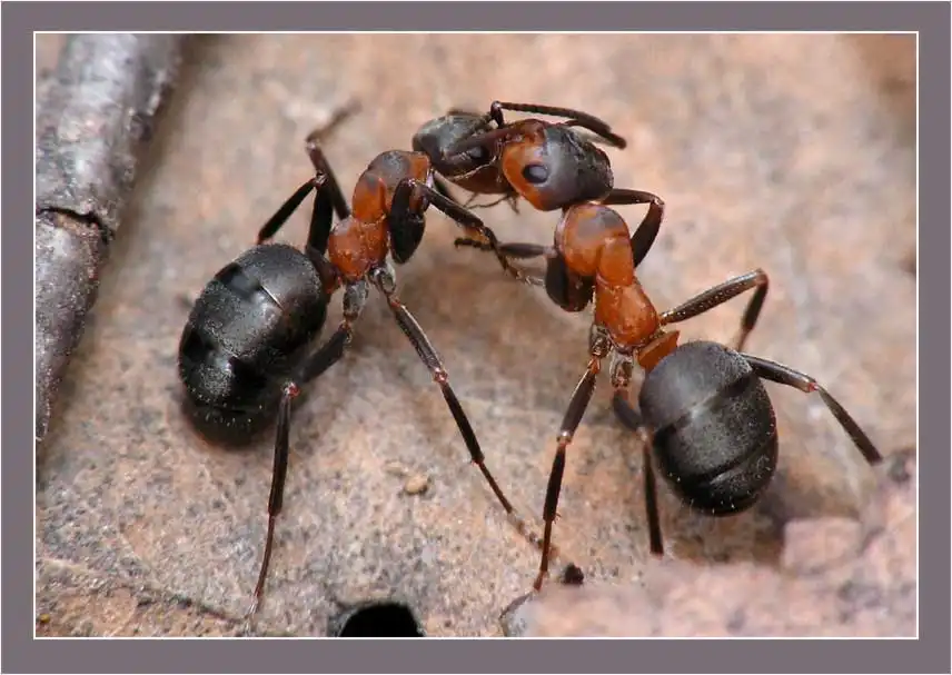После этого туда же был кинут муравей того же вида, чёрный, но из другого муравейника. Колонисты обступили его, ощупали своими усиками и разошлись. Бедняга смог спокойно выбраться из бутыли и отправиться на поиски своего дома.