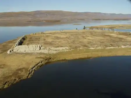 В Республике Тыва, почти на самой границе с Монголией, в горах на высоте 1300 метров над уровнем моря расположено озеро Тере-Холь. Горный водоем, каких в России можно насчитать тысячи. Но уникально оно тем, что посреди него на острове сохранились развалины древней крепости.