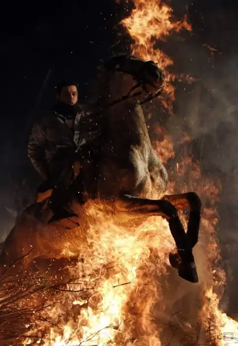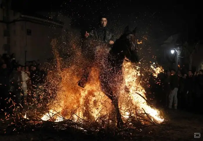 В то же время в испанской деревне Сан-Бартоломе де Пинарес (San Bartolome de Pinares) существует многовековая традиция - праздник Las Luminarias, который традиционно проходит накануне дня Святого Антония. Во время праздника жители деревни проводят церемонию “очищения”, проезжая верхом через горящие костры.