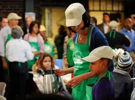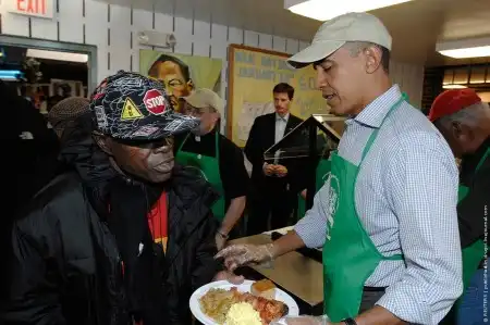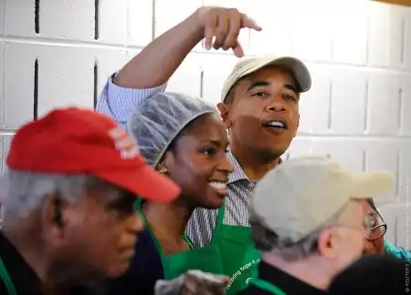 18.01.2010, США | Семейство президента США Барака Обамы в полном составе (Мишель и дочери в т.ч.) приняли вчера участие в организации благотворительного обеда для бездомных жителей Вашингтона в честь национального праздника — Дня Мартина Лютера Кинга.