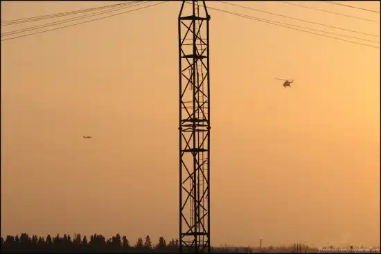 44) Пейзаж поменялся. Та же тундра, та же ночь... Но вся тундра в голубых огоньках буровых, в ярких отсветах факелов. Буровые повсюду.