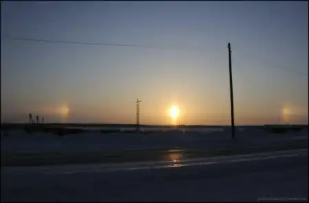 25) На улице видим гало ещё сильнее вчерашнего. Машина в тёплом гараже завелась с пол-оборота. Разница температуры с улицей - градусов под шестьдесят.