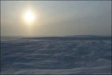 6) Мы в Усинске (ударение на "у"). Правда, нам сказали, что в Нарьян-Мар мы, конечно, не доедем: нужна тачила посерьёзнее - ну, это нам уже говорили перед дорогой на Нижмозеро, которую, мы, кстати, вполне прошли. Короче, было решено доехать до начала НМ зимника и, хотя бы, посмотреть, что это такое. Заодно пересечь Полярный Круг. Тем более, что туда асфальтовая дорога. Итак, за окном снова -20, вот только... раньше я думал что поговорка "если ворона летит хвостом вперёд - на улице сильный ветер" - это шутка.