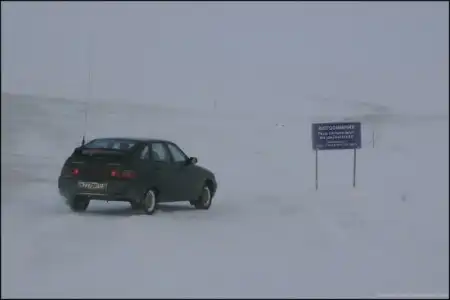 20) Доехали до первого поста. Такой вагончик МЧС, спрятанный за насыпной горой снега (чтобы не дуло) и шлагбаум. Спросили, как насчёт Нарьян-Мара. Нам говорят: мы не знаем, решайте сами ехать, или нет. Всё что требуется, чтобы поехать - записаться в журнал.