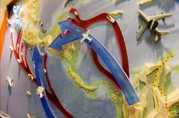 Подсвечиваемая 3-D карта показывает направления наркотраффика в США с юга. (Sarah L. Voisin-Washington Post)