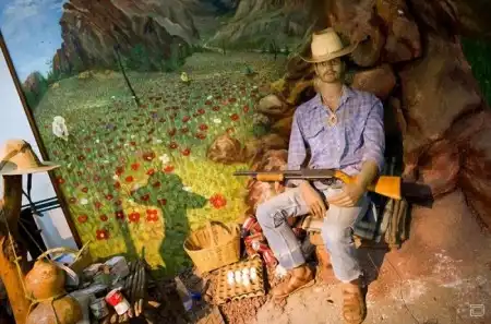 Диорама в натуральную величину, изображающая фермера, охраняющего свой урожай. Диораму сопровождает магнитофонная запись нарко-корриды – популярных баллад о наркоторговцах. (Sarah L. Voisin-Washington Post)