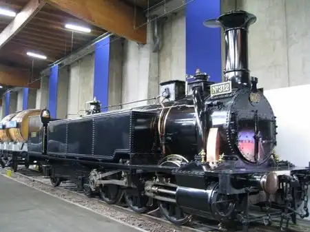 стефенсоновский паровоз. Построен в Англии в 1846м году, работал на французских трассах 25 лет, потом еще столько же использовался в качестве стационарного движителя, с 1910-го года хранится в музеях.