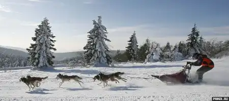 Сотни любителей езды на собачьих упряжках каждый год съезжаются на экстремальные гонки, проходящие в Орлицких горах в Чехии.
