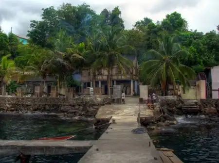 Расстояние там около 150 км, самолёт летит 35 минут, и утром 7-го января я оказался в совершенно другом мире. Гористый, как и большинство Антил, остров, заселённая только узкая прибрежная полоса. Маленькие бухты с чёрным вулканическим песком, многие из которых доступны только с моря. Более бедный, но и более приветливый народ.