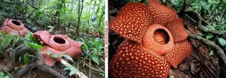Раффлезия - род удивительных растений, паразитирующих в основном на лианах. Представители рода Раффлезия не образуют листьев, стеблей и корней, проводя большую часть своего жизненного цикла в тканях растения-хозяина. Растение выделяется огромными размерами цветов, размеры которых могут превышать в диаметре 1 метр, а вес более 10 килограмм. Скопления этих цветов напоминают, какие-то инопланетные образования. Только насладиться ароматом этих цветков не удастся. "Аромат" этих цветков похож на запах тухлого мяса. Этот запах, как магнитом, притягивает основных опылителей растения - мух. Цветовая гамма цветка тоже "до боли" напоминает огромный кусок мяса с хрящами и прожилками.