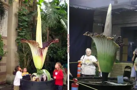 Род Аморфофаллус, также как и род Раффлезия славится своим "тонким ароматом" разлагающейся плоти. Запах, исходящий от цветка ужасен. Без противогаза любоваться аморфофаллусом способны немногие. Цветок большинства представителей этого рода огромен в размерах (Особенно у представленного на фото вида Amorphophallus titanum) и может достигать высоты 2,5 метра при диаметре 1,5 метра. Во многих восточных странах клубни этого растения используются при приготовлении различных кулинарных блюд и лекарств.