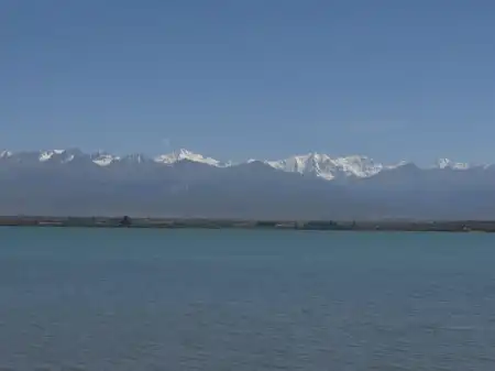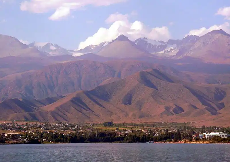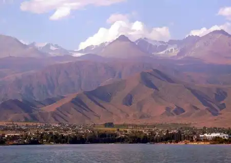Озеро Иссык-Куль. Пик Каракол 5216м и Пик Огуз-Баши (Б. Ельцина) 5168м